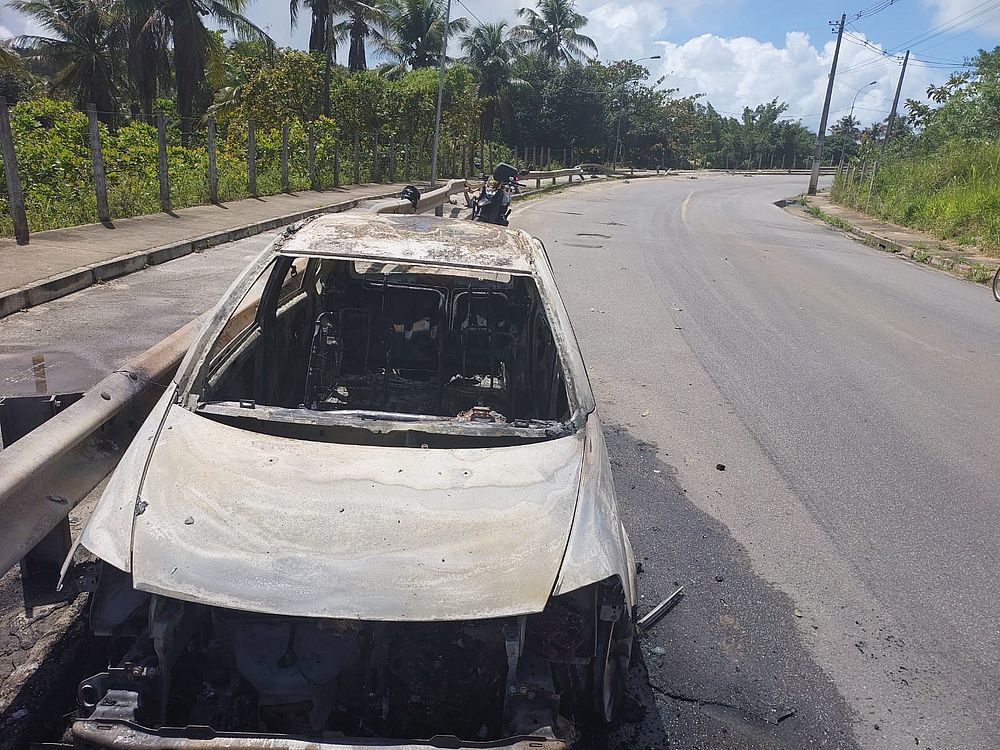 | Carro incendiado na Avenida Pierre Chalita. Foto: Williames Taves / TV Pajuçara |