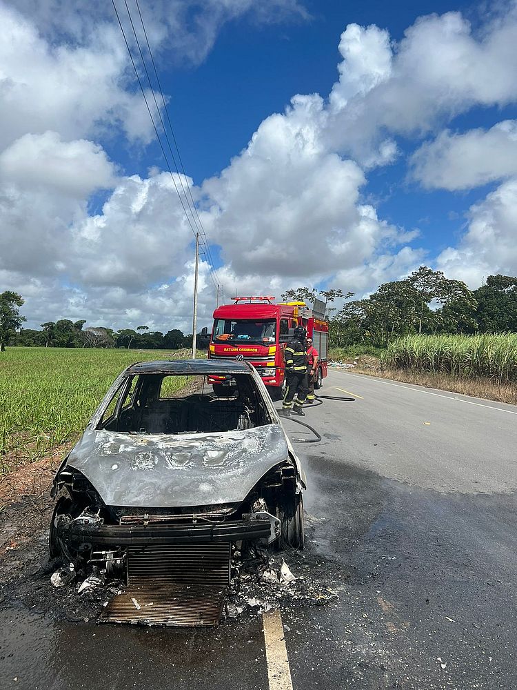 O Corpo de Bombeiros informou que sete militares foram enviados para conter as chamas do princípio de incêndio em um veículo.