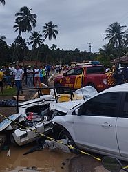 Um acidente envolvendo turistas de Minas Gerais que estavam em um buggy foi registrado na manhã desta quinta-feira (11), no município de Porto de Pedras. A colisão envolveu ainda um carro de passeio e uma motocicleta. Corpo de Bombeiros e Serviço de Atendimento Móvel de Urgência (Samu) foram acionados para o socorro aos feridos.