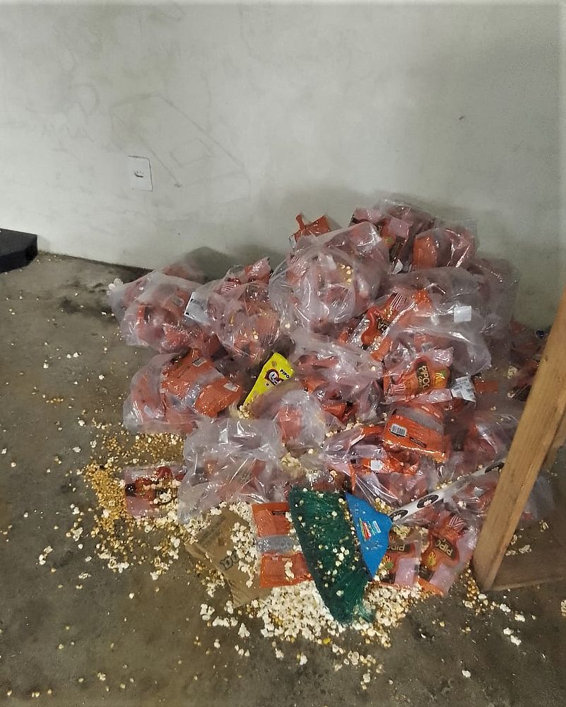 Pipocas eram fabricadas em desrespeito às boas práticas de manipulação de alimentos. Foto: Vigilância Sanitária |