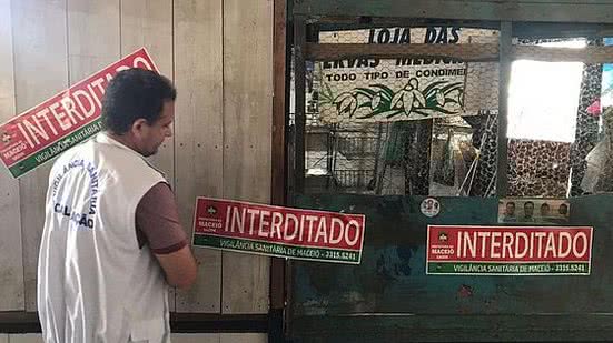 A Vigilância Sanitária (Visa) de Maceió interditou, nesta quarta-feira (29), um estabelecimento localizado no Mercado Público do Jacintinho. O local comercializava produtos naturais utilizados no tratamento de enfermidades diversas (ervas, garrafadas e pomadas medicinais) sem o registro da Agência Nacional de Vigilância Sanitária (Anvisa), em desacordo com as legislações sanitárias.