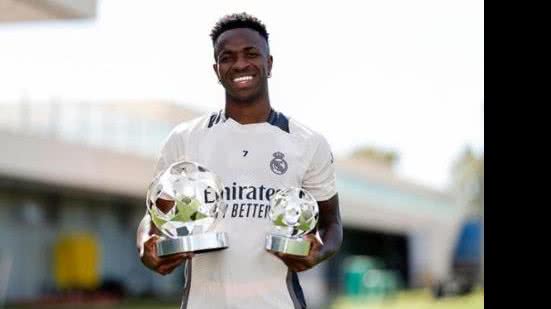 O atacante brasileiro Vinicius Júnior, do Real Madrid (Espanha), finalmente recebeu nesta segunda-feira (16) o troféu de melhor jogador da temporada 2023/2024 da Liga dos Campeões da Europa. Ele foi escolhido para receber o prêmio no início de junho, alguns dias após a final da competição.