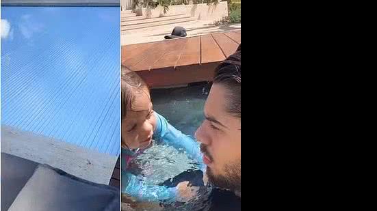 O cantor pulou na piscina de roupa com medo de a filha caçula, Maria Flor, se afogar. Ele relatou a situação nos stories do Instagram.