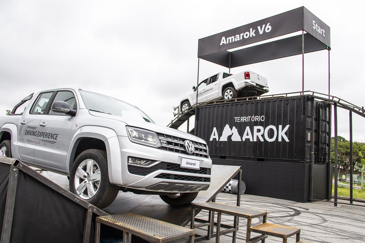 Quem gosta de uma aventura off-road pode sentir um gosto com a Amarok V6 da Volkswagen no percurso que ajuda a demonstrar as subidas e descidas da picape. A montadora alemã também disponibiliza Golf GTE, Jetta, Passat, Amarok V6 e Tiguan em outro teste.