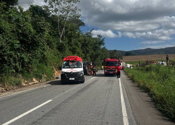 A Polícia Rodoviária Federal também enviou equipes ao local, mas ainda não há informações sobre o que pode ter provocado o tombamento.