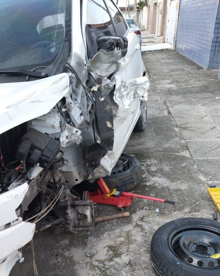 Na imagem acima, compartilhada com a reportagem, é possível observar os danos na parte da frente e da lateral do Ford Ka de Lamenha.