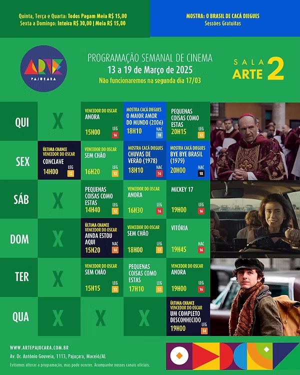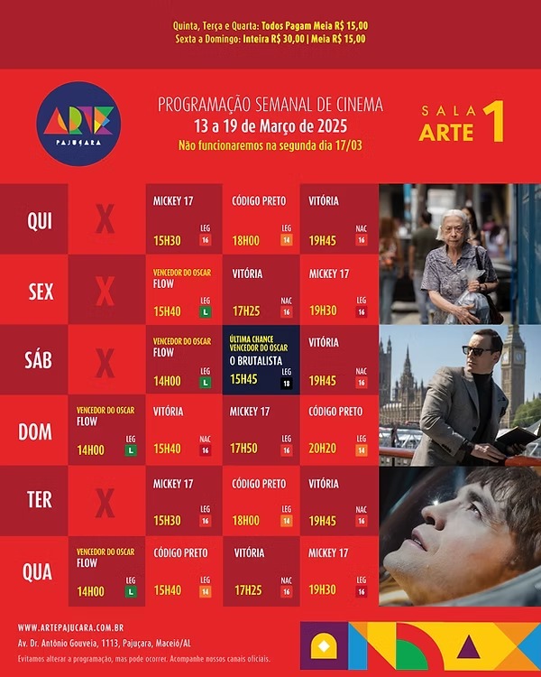 Disponível em: Cinesystem (Parque Shopping) e Arte Pajuçara.