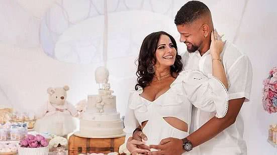 No momento mais esperado, Vivi e Guilherme se posicionaram em frente a tambores. Ao som de “Explode coração”, clássico samba do Salgueiro, escola a qual ela é rainha de bateria, o ambiente ficou todo azul. Os papais corujas se emocionaram e se abraçaram, na ocasião. A escola também fez questão de homenagear sua realeza. Compartilhou uma imagem da artista junto com o marido e os dizeres: "É menino. Joaquim", acompanhado de um coração na cor azul.