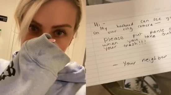 "Oi, meu marido pode ver você em nossa câmera. Por favor, vista as calças quando você tirar o lixo", diz o bilhete.