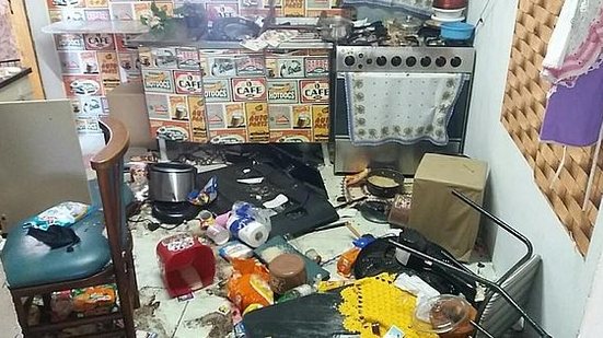 A invasão teria acontecido entre 21h e 22h30. A reportagem apurou que os vizinhos bagunçaram toda a cozinha, onde havia dezenas de potes com bolachas e biscoitos, além de outros produtos.