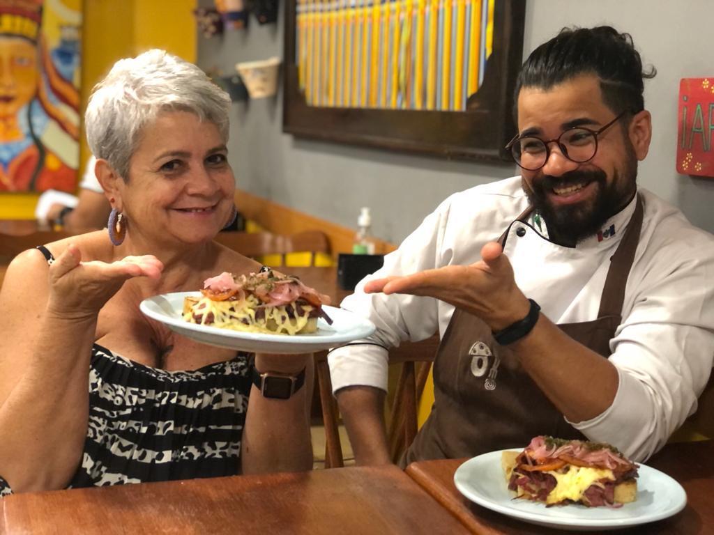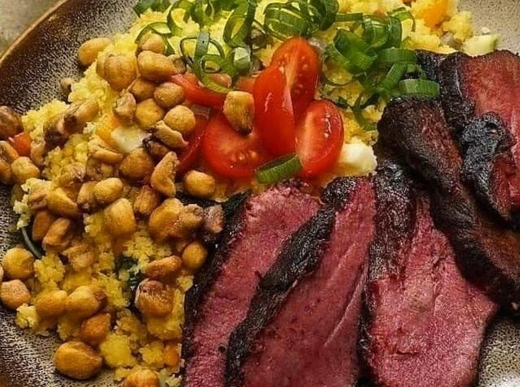 Todo mundo é bom de língua! Em especial a língua elaborada pelo chef Rodrigo Aragão (@@rodrigoaragaoal), do Ôxe Comidas Nordestinas (@oxe_maceio). Infelizmente muita gente discrimina a iguaria, porque não imagina o quanto ela é gostosa, mas o chef capricha no preparo, a carne fica sete dias imersa em temperos deixando-a mais saborosa, ainda vai para panela de pressão e ao forno. Por fim, as fatias da língua são deitadas no pão focaccia (pão italiano) tostado na manteiga do sertão, queijo coalho, tomate tostado e picles de cebola roxa e chimichurri nordestino (leva coentro).