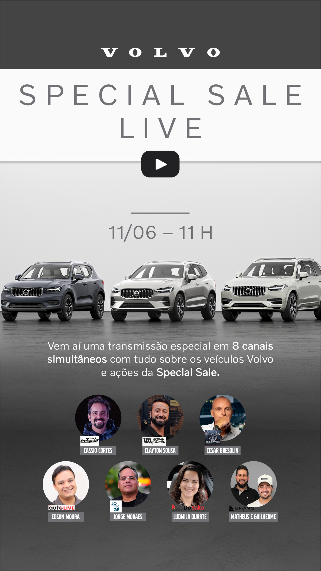 A Volvo Car Brasil promoveu nesta sexta-feira, dia 11 de junho, uma super live que foi transmitida simultaneamente em oito canais do Youtube, entre eles o Canal AutoLive, do Pajuçara Auto.