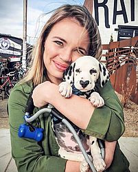 “Ele veio de uma ninhada de 11 filhotes, e 8 deles eram machos, então eu fiz uma escolha difícil ao escolhê-lo. O coração estava lá, mas não totalmente formado ao ponto em que eu acreditava que ficaria, já que os pontinhos dos dálmatas mudam tanto conforme eles crescem. Eu o escolhi porque o criador me disse que tudo o que ele fazia era dormir, descansar e comer, então já tínhamos muito em comum,” brinca.