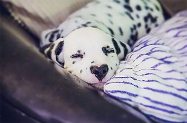 Quando Wiley não está dormindo, sua mãe diz que ele também pode ser bastante teimoso (um traço comum entre os dálmatas).