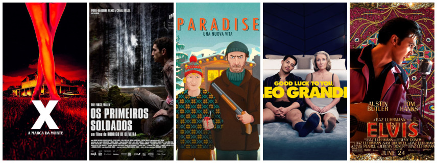 O Arte Pajuçara traz a estreia do longa de terror ‘X - A Marca da Morte’, ‘Os Primeiros Soldados’, que acompanha grupo de jovens capixabas homossexuais que decidem celebrar o ano novo juntos, mas sem terem ideia do mal que estava por vir, e ‘Paradise - Uma Nova Vida’, filme italiano dirigido por Davide Del Degan. ‘Crimes do Futuro’, ‘Boa Sorte, Leo Grande’ e ‘Elvis’ seguem em cartaz.