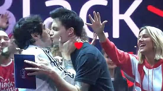 E não tardou para a marca ser alcançada. "Esse é o momento", anunciou Neto, antes de dar um selinho em Castanhari, selando a nova fase de amizade da dupla.