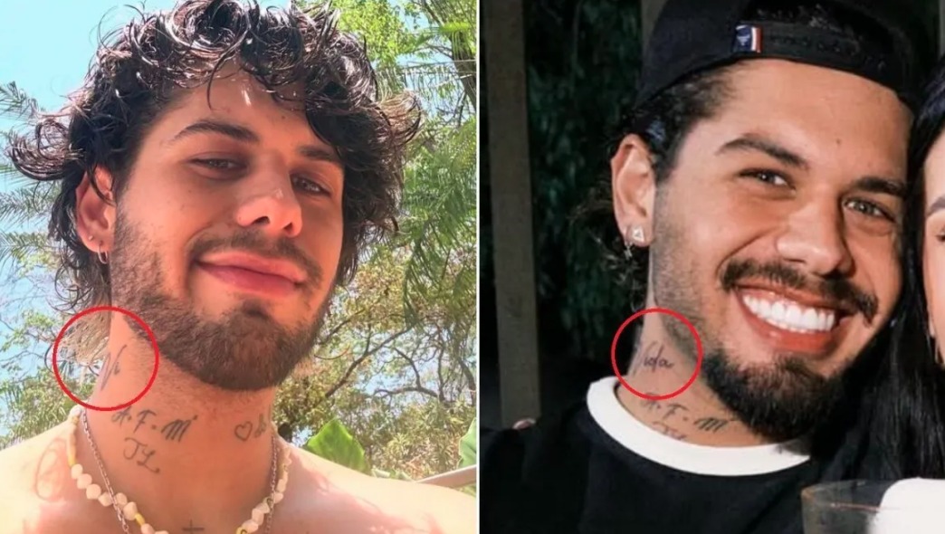 Zé Felipe, após a separação de Virginia Fonseca, alterou uma tatuagem em homenagem à ex-esposa, mudando o apelido 'Vi' para a palavra 'Vida' em seu pescoço, o que gerou repercussão nas redes sociais.