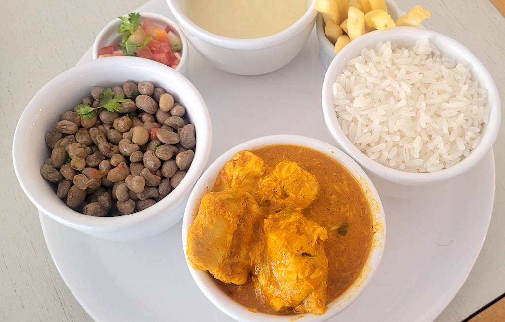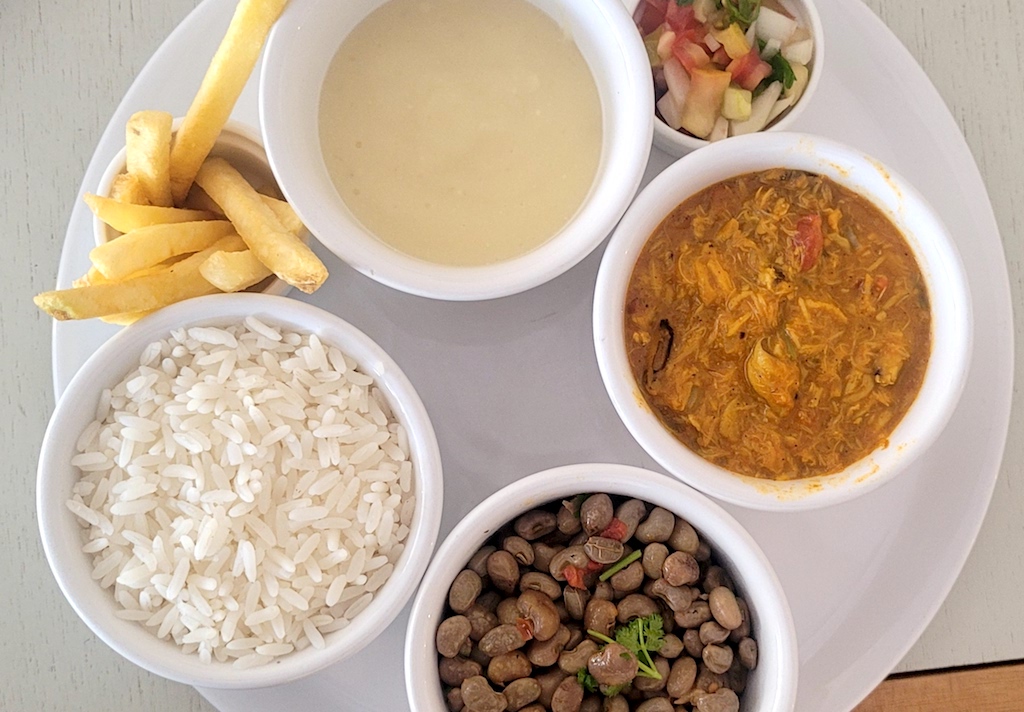 Arrumadinho de camarão do Cação vem com feijão verde, bacon, farinha