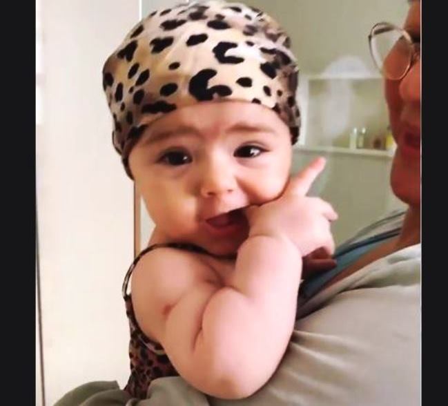Mãe coruja, Sabrina Sato sempre compartilha momentos fofos da sua filha, Zoe, de quase 5 meses de vida, nas redes sociais. Neste sábado, 27, a apresentadora aproveitou a viagem em família para curtir um dia na piscina. A pequena se vestiu à caráter para cair na água, e apareceu no Stories do Instagram vestindo uma combinação de roupinha e toquinha com estampa de onça. "Vamos para a piscina, Zoe?", disse a mamãe, enquanto mostrava a filha no colo da avó, dona Kika.