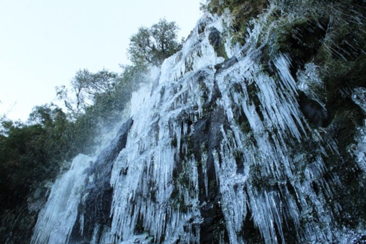 A atração acontece no Morro das Torres, ponto mais alto da cidade e também palco das temperaturas mais rigorosas da região. Ali, uma queda d’água dividida em duas seções fica totalmente congelada quando o frio aperta de verdade.