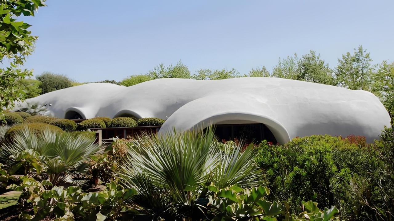 Com isso, teto e paredes passam a formar uma estrutura única, conferindo à residência um visual que remete a construções típicas de cenários de ficção científica, como as retratadas em filmes como Star Wars, por exemplo.