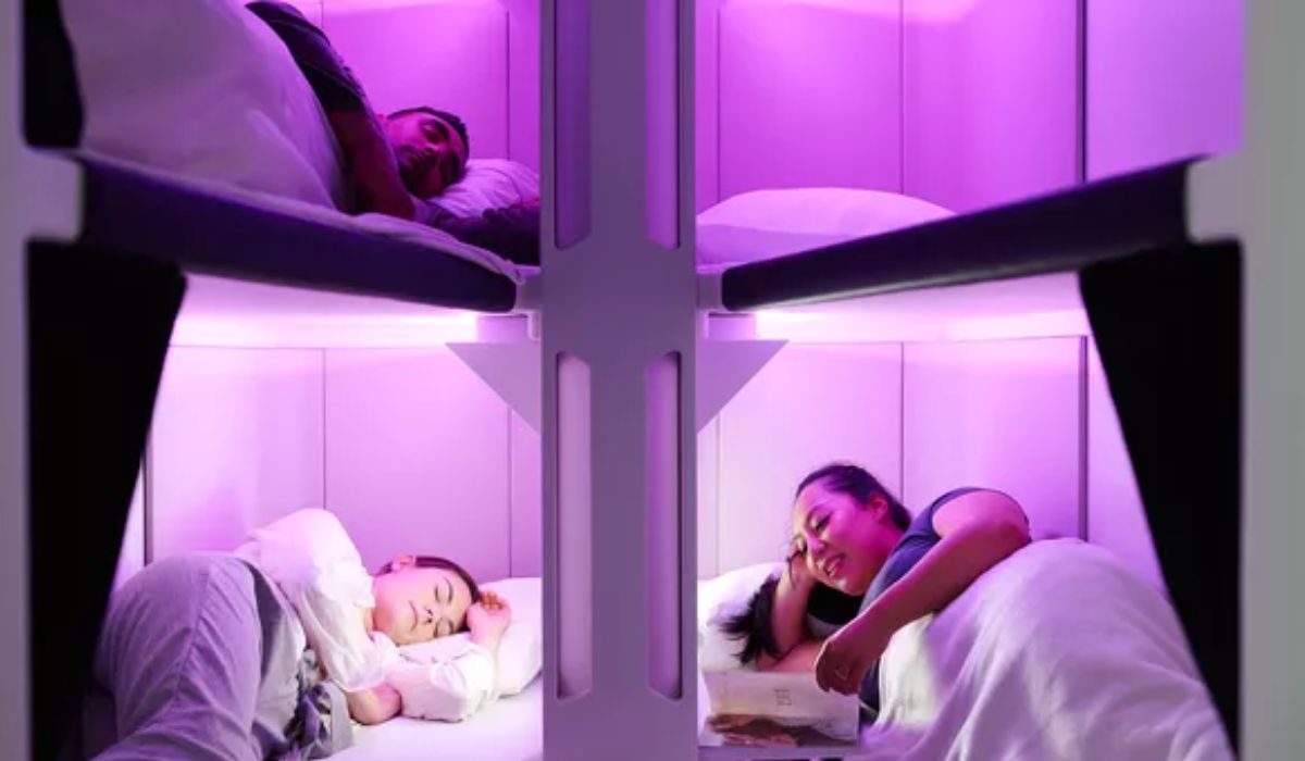 O local onde estarão instaladas as beliches contará com cortina, tomada para carregar o celular ou outros aparelhos permitidos no voo, botão para chamar comissários e até iluminação especial.