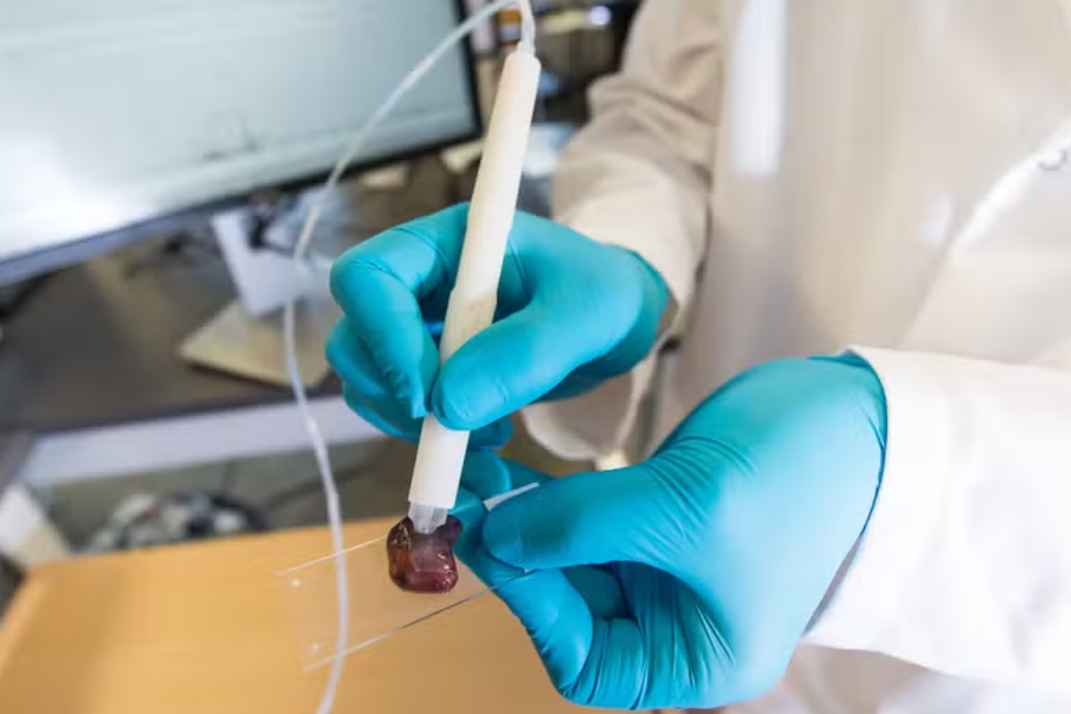 O funcionamento é simples e impressionante. A caneta é conectada a um espectrômetro de massas, equipamento de alta precisão capaz de identificar moléculas e revelar a “assinatura química” de cada tecido.
