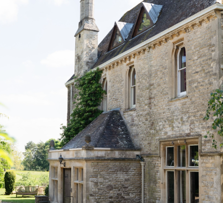 Outro ponto de destaque são os jardins paisagísticos, que cercam a propriedade e proporcionam vistas panorâmicas da zona rural de Gloucestershire. O anúncio descreve o local como um refúgio cercado por gramados amplos, árvores maduras e uma paisagem considerada uma das mais belas da região.