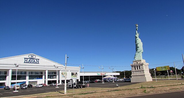 Quem trafega pela BR-101, no Litoral Norte de Santa Catarina, dificilmente passa despercebido por uma estrutura monumental que se impõe na paisagem de Barra Velha. Trata-se da maior réplica da Estátua da Liberdade instalada em unidades da rede Havan, com impressionantes 57 metros de altura, superando com folga os 38 metros do Cristo Redentor, no Rio de Janeiro.