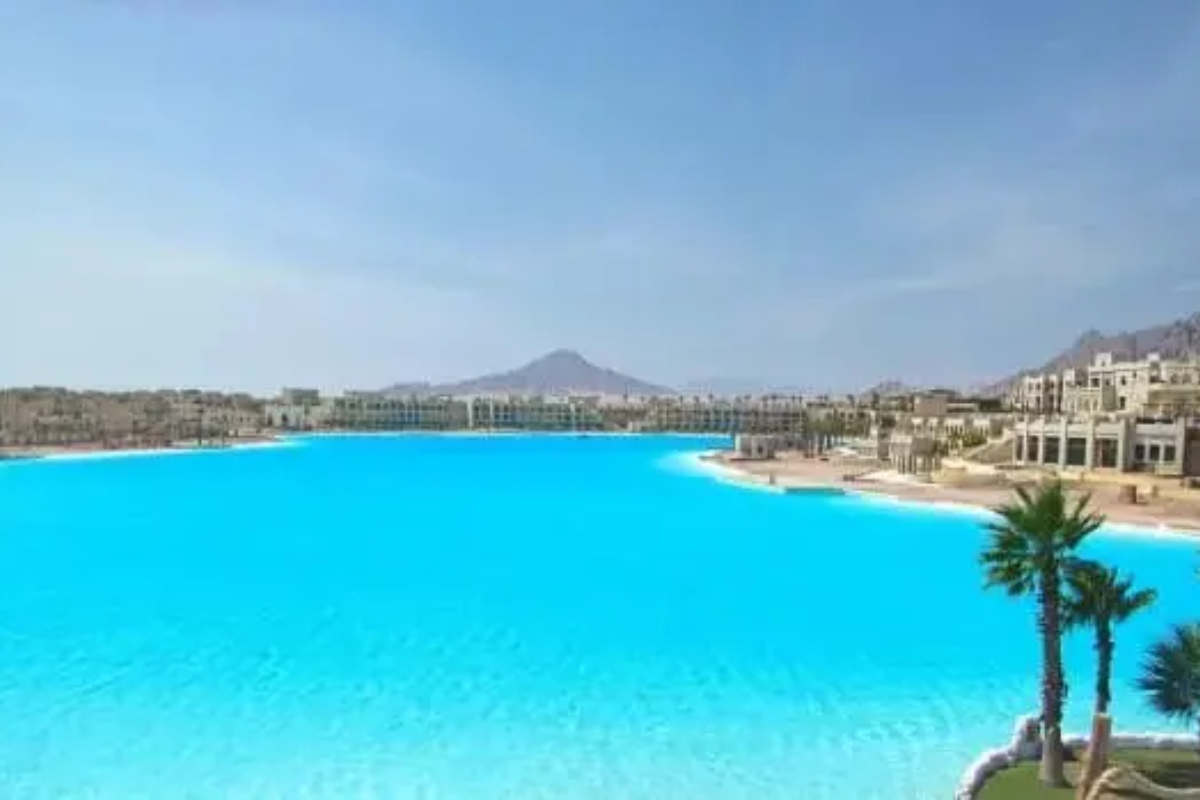 No coração do deserto do Sinai, no Egito, uma enorme lagoa de águas azul-turquesa quebra a monotonia da paisagem árida. Trata-se do Citystars Sharm El Sheikh, oficialmente a maior piscina do mundo, reconhecida pelo Guinness World Records desde 2015.