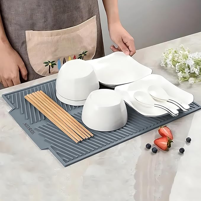 Os tapetes de silicone não apenas cumprem sua função, mas também combinam com o design minimalista contemporâneo, mantendo a área de preparo limpa e organizada, sem sacrificar a estética dos lares modernos.