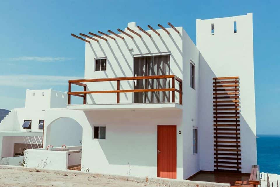 A Casa Mar da Grécia em Arraial do Cabo oferece uma imersão na estética e cultura grega, adaptada ao contexto local brasileiro.