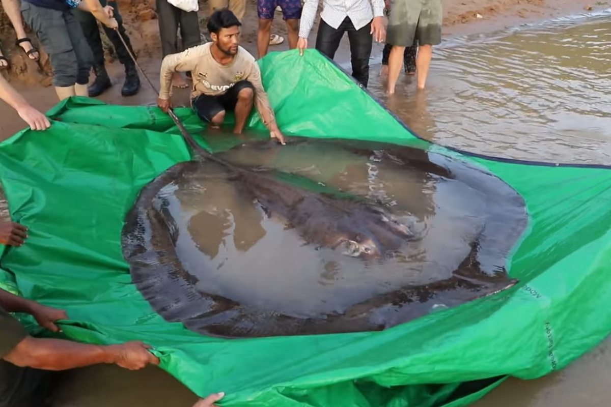A espécie identificada foi a Urogymnus polylepis, conhecida como raia-gigante do Mekong. O animal impressiona não apenas pelo peso de cerca de 300 kg, mas também pelo comprimento que chega a quase quatro metros da cabeça à ponta da cauda.